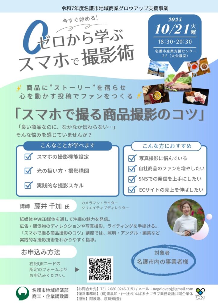 市内事業者を対象にしたセミナー「スマホで撮る商品撮影のコツ」を開催します。
